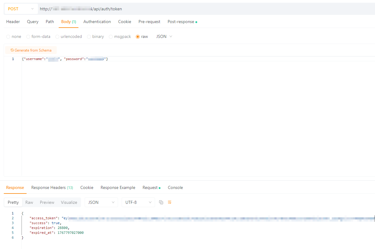 | Request Address | https://xxx.xxx.xxx.xxx:8481/api/auth/token |