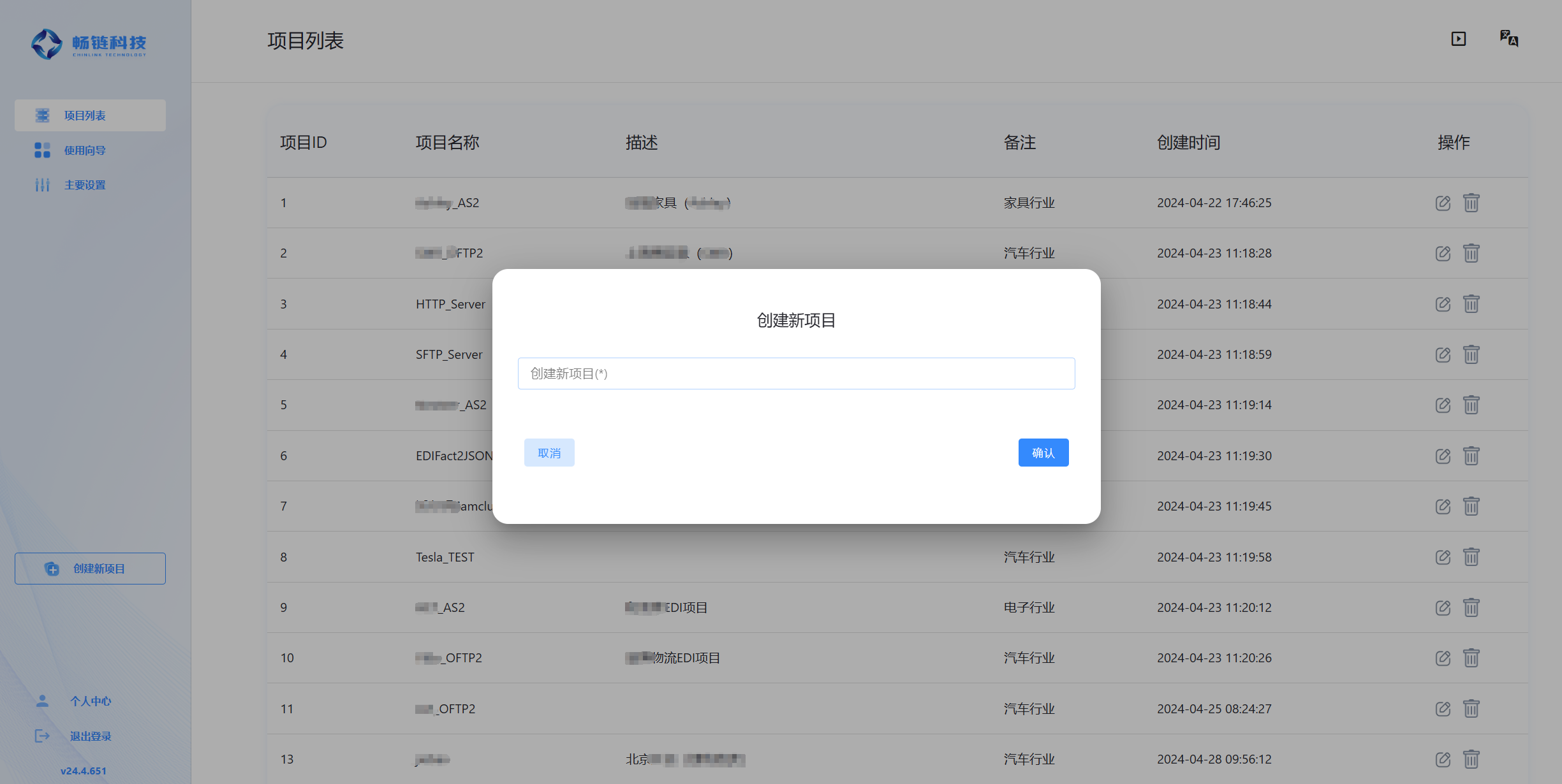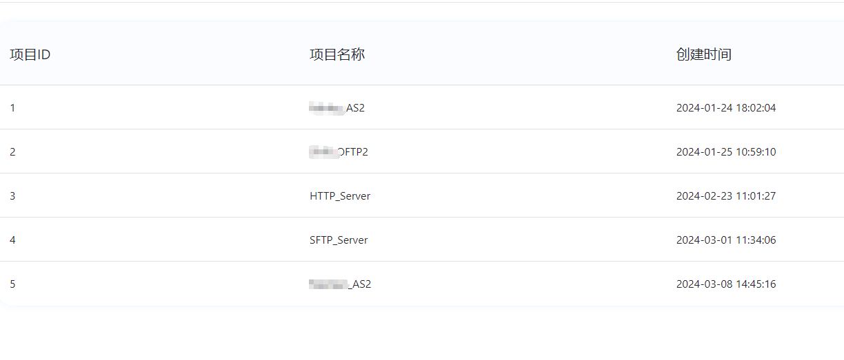 项目列表,可显示当前创建的所有项目,以及项目创建时间,可支持同时对接多个客户场景。