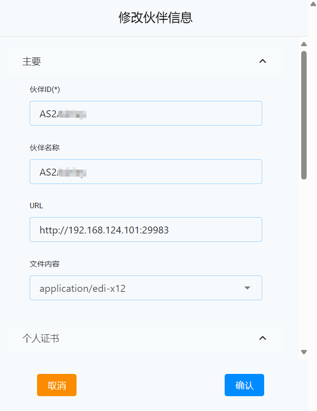伙伴 ID - 合作伙伴的 AS2ID。