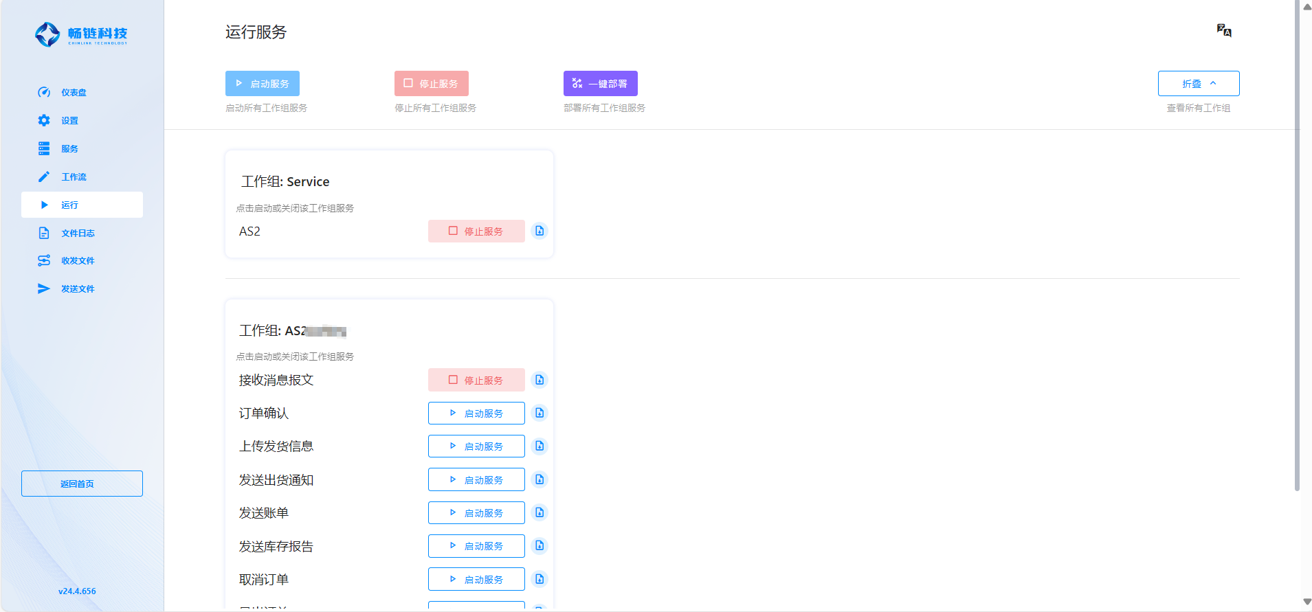 用户能够在此界面方便地启动或停止编辑流程界面中配置的所有服务,请参考“安装与启动”。