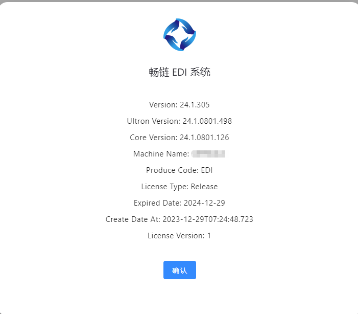 介绍畅链 EDI 系统当前版本以及注册码相关信息。