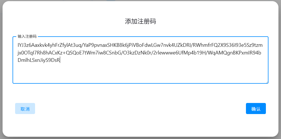将 注册码 拷贝到输入框中,点击 "确定" 按钮。
