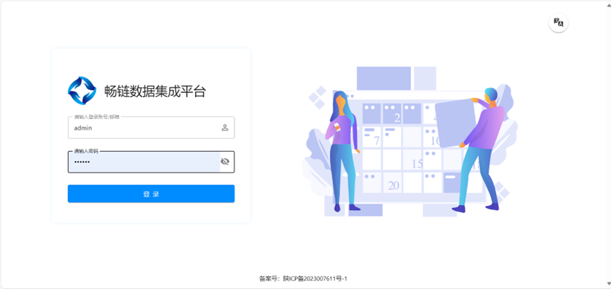 浏览器地址栏输入 http://[ip]:8480/login 使用刚刚初始化的 admin 账户即可使用畅链数据集成平台。
