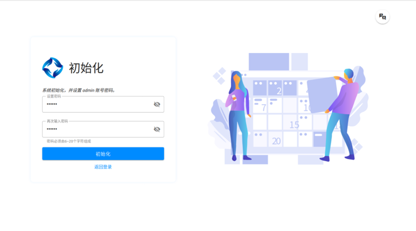 启动服务后即可进入浏览器输入 http://[ip]:8480/init 初始化 admin 账户。(外部设备访问,防火墙需要开放端口)