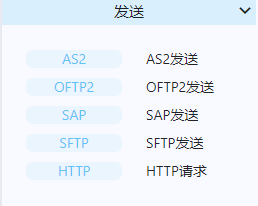 多用于向合作伙伴发送转换好的报文消息或向国内客户的系统对接发送 HTTP 请求,其中包括 AS2 发送、OFTP2 发送、SAP 发送和 HTTP 请求等操作。