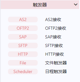 多用于接收合作伙伴发送过来的报文信息,其中包括 AS2 接收、OFTP 接收、HTTP 接收等操作。