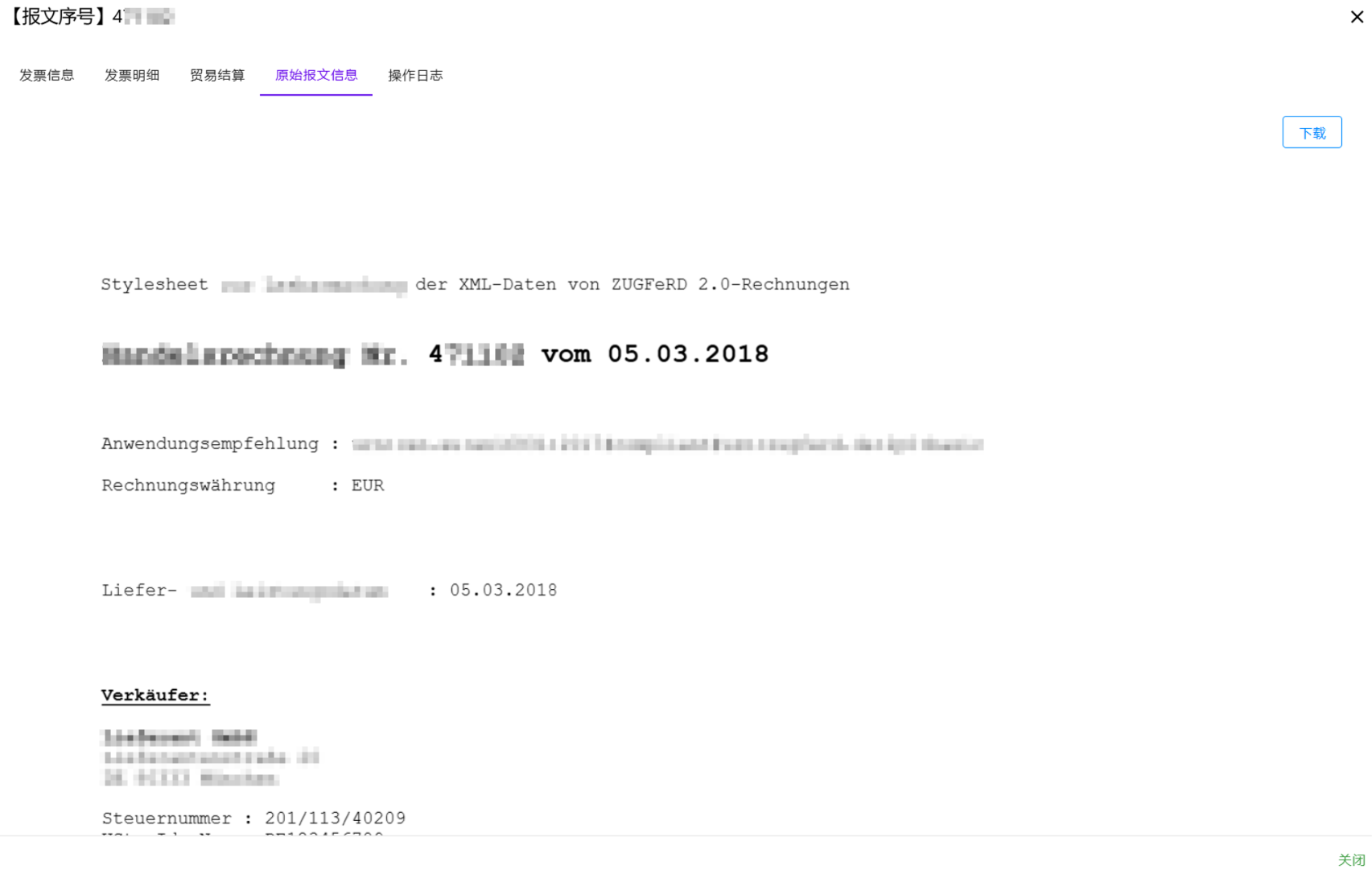 原始发票信息(以 PDF/A 格式发票为例)