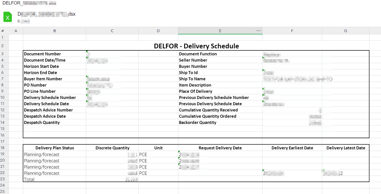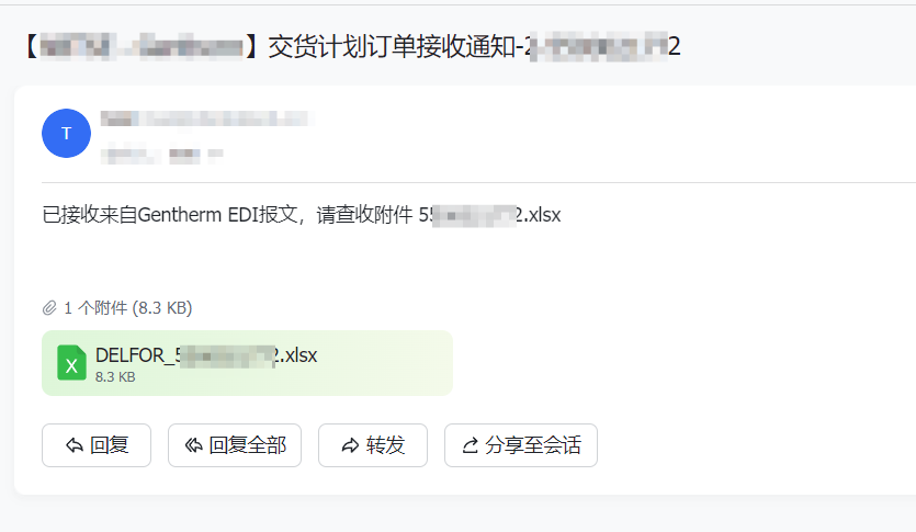 除了上述界面展示外,客户的 DELFOR 订单预测将通过邮件的形式发送到指定的电子邮箱。