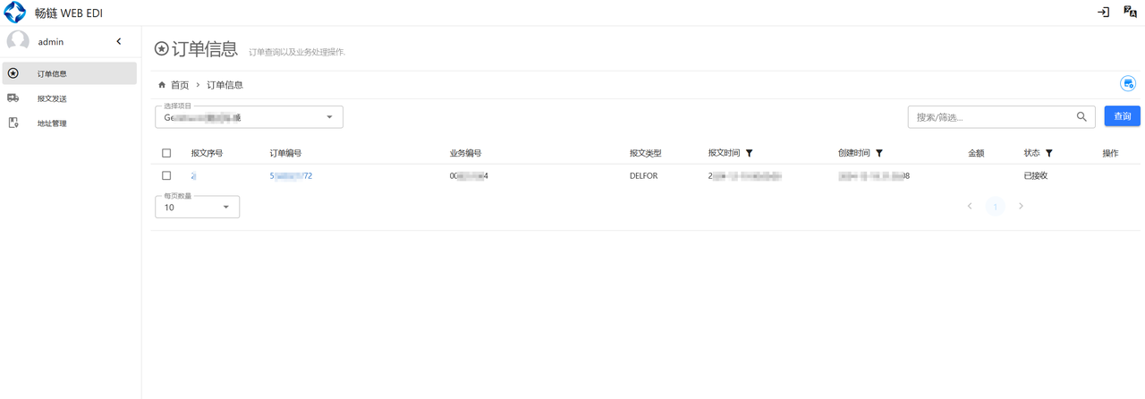 订单信息界面:用于展示接收到的 DELFOR 报文内容,便于查看订单详细信息。