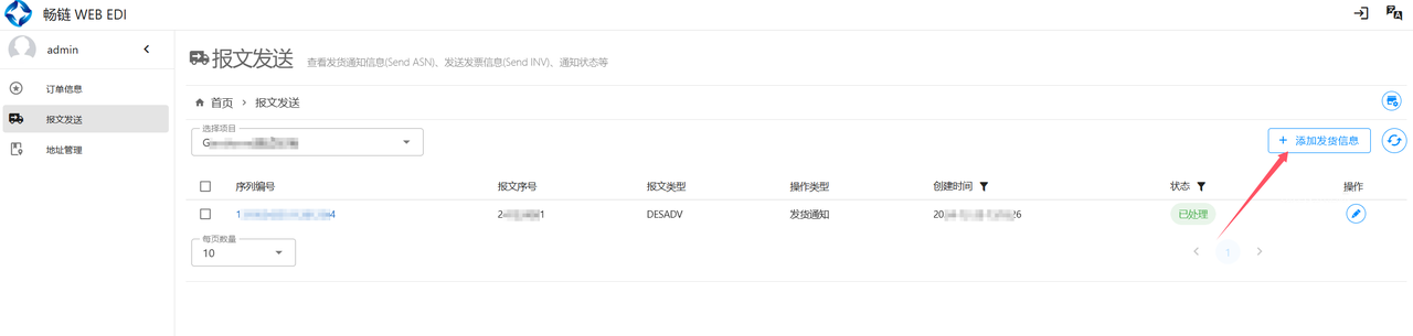 报文发送界面:用于填写并提交 DESADV 报文。在输入发货相关信息后,系统会生成对应的报文并提交至数据集成平台,以便发送给对方。