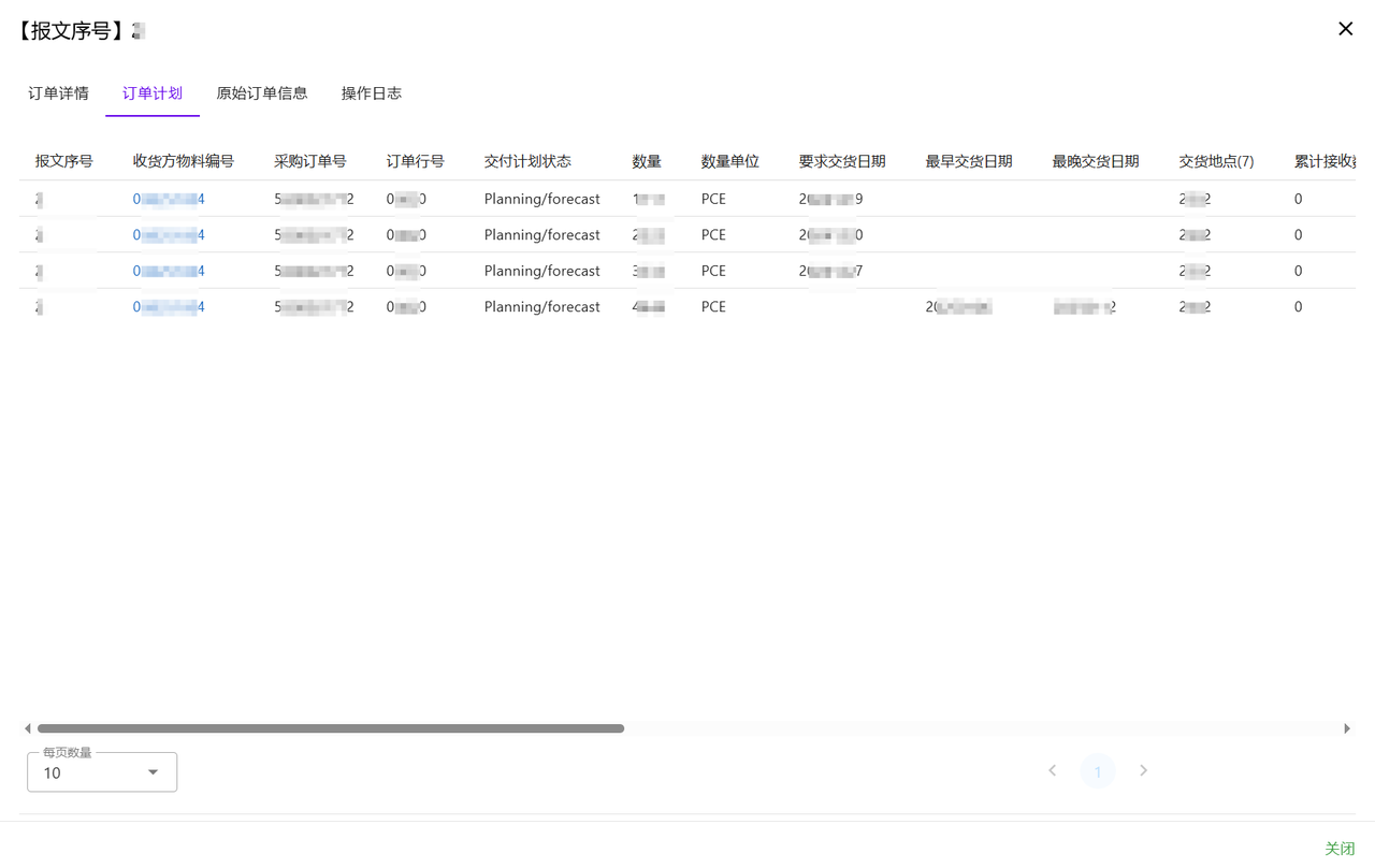 订单信息界面:用于展示接收到的 4905 报文内容,便于查看交货计划的详细信息。