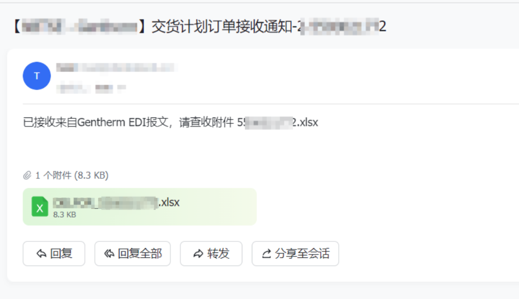 除了上述界面展示外,客户的 4905 交货计划将通过邮件的形式发送到指定的电子邮箱。
