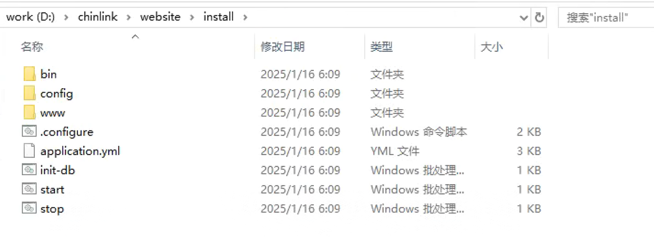 解压安装包到 D:/chinlink/website 目录。